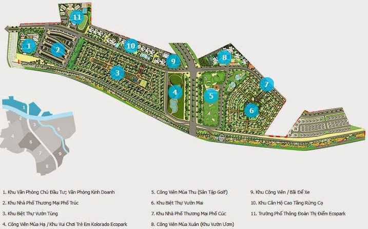 Bản đồ các khu vực chính của khu đô thị Ecopark.