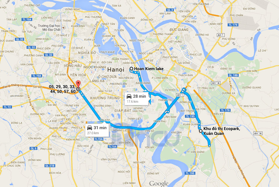 Theo đường thủy trên Sông Hồng => sông Bắc Hưng Hải đi qua khu đô thị Ecopark