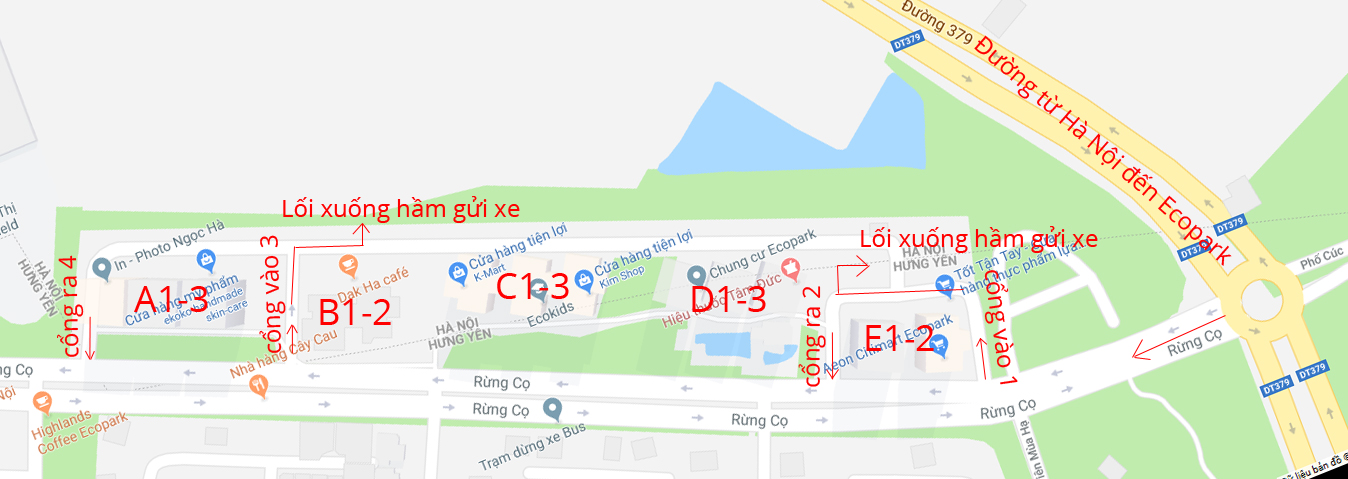 Nếu di chuyển bằng phương tiện cá nhân, bạn có thể tham khảo cung đường di chuyển tới khu đô thị Ecopark như sau: