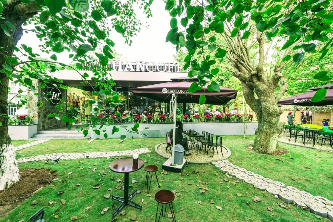Han Coffee với sân vườn tuyệt đẹp này nằm ở Phố Trúc Ecopark, ngay cạnh hội chợ cuối tuần EcoSunday.