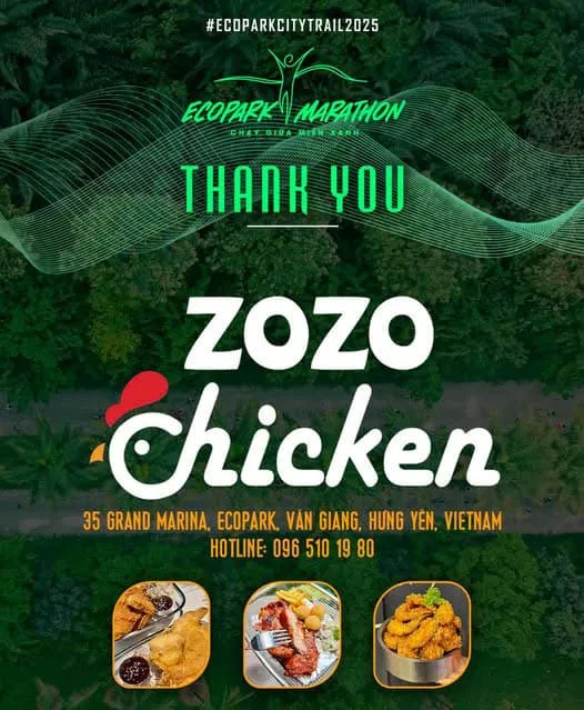 Dù bạn là runner chuyên nghiệp hay chỉ là “tay mơ” trên đường chạy, chắc hẳn ai cũng biết một điều: chạy bộ và ăn ngon là hai niềm vui không thể tách rời! Cũng chính vì lẽ đó, Chicken Zozo – thương hiệu gà rán mang phong cách Hàn Quốc – sẽ là nhà tài trợ đồng hành cùng Ecopark City Trail 2025, tiếp thêm tinh thần bùng nổ cho các vận động viên.